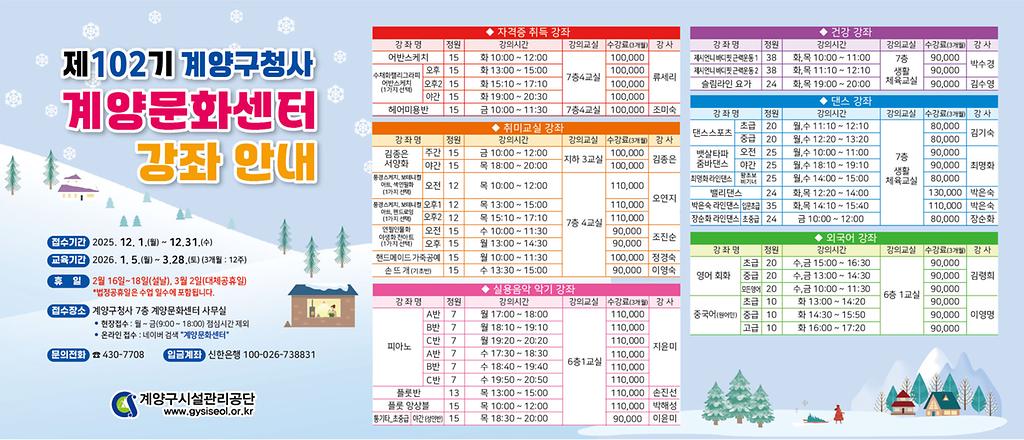계양문화회관 제102기 겨울학기 문화센터 수강생 모집