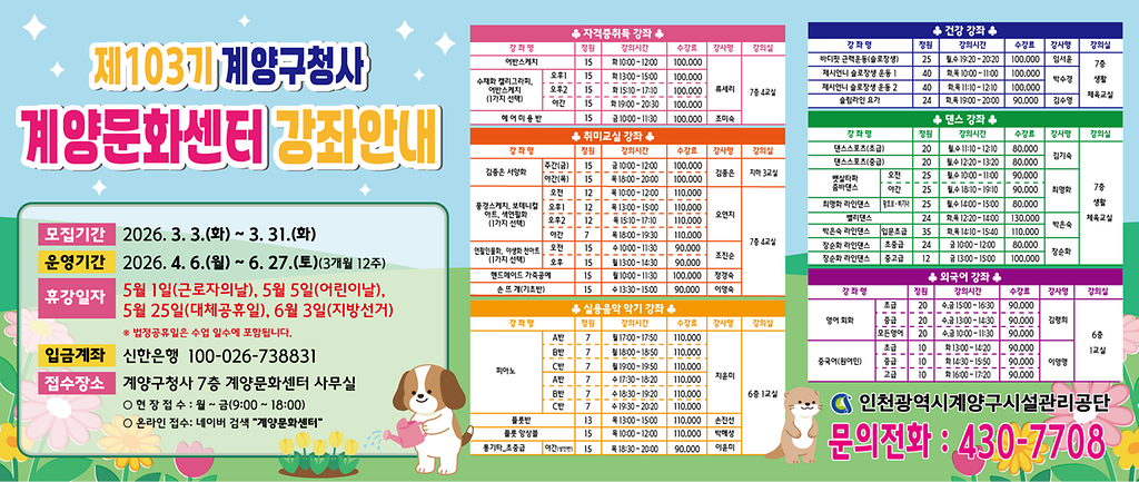 계양구청사 제103기 계양문화센터 수강생 모집
